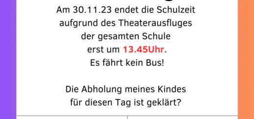 Dann möchte ich Sie noch einmal darauf aufmerksam machen, dass wir in der Aula einige Fundsachen aus dem letzten Schuljahr ausgelegt haben. Viele Kinder waren schon sehr fleißig und haben ihre Sachen mitgenommen. Bis kommenden Freitag, den 23.09.2022 werden wir die Sachen dort noch auslegen. Nutzen Sie gerne die Gelegenheit und schauen sie nach fehlenden Kleidungsstücken 🙂