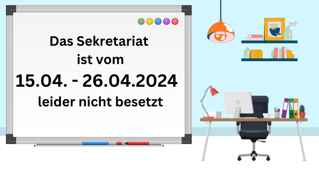 Die nächsten Tage ist leider unser Sekretariat nicht besetzt.