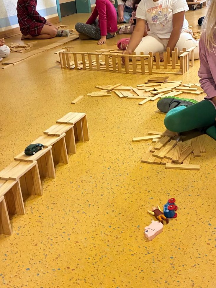 Die Kinder bekamen unterschiedliche Aufgaben: Mal sollte eine Brücke einen „Fluss“ überqueren, mal musste sie stabil genug sein, um ein Auto – natürlich ein Spielzeugauto – zu tragen. Mit viel Fantasie, Geduld und Teamgeist entstanden aus einfachen Holzbausteinen die unterschiedlichsten Bauwerke.