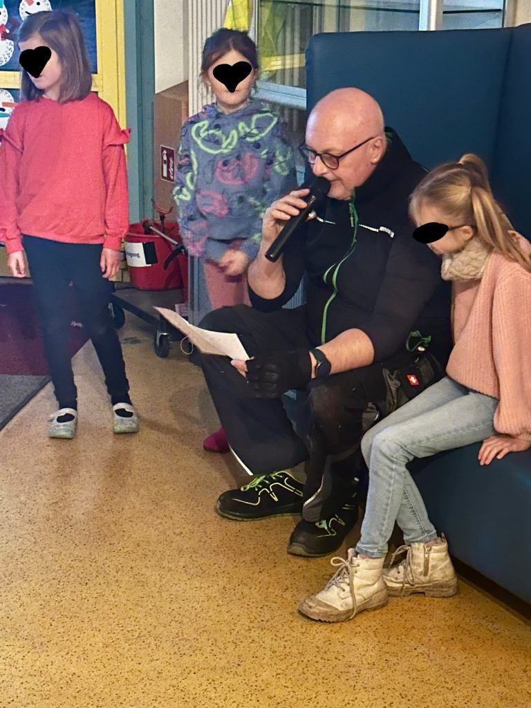 Der Hausmeister liest den heutigen Wichtelbrief vor.