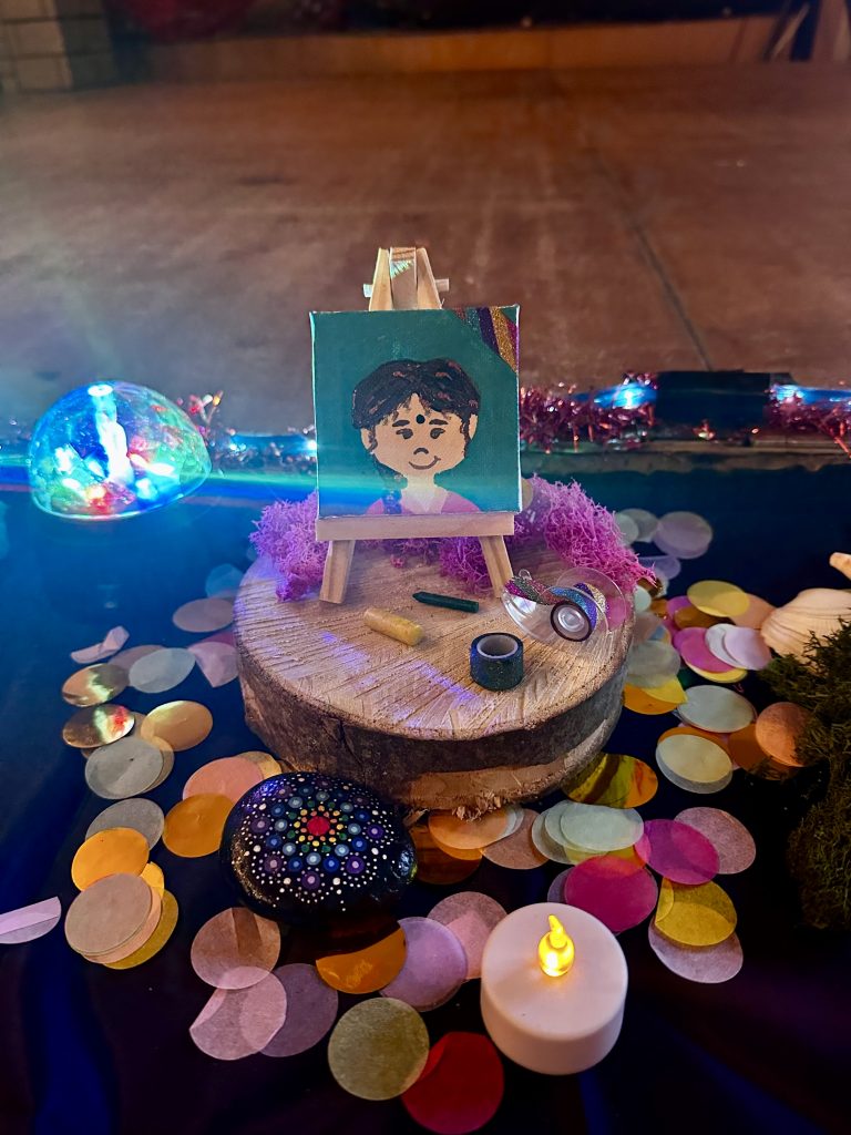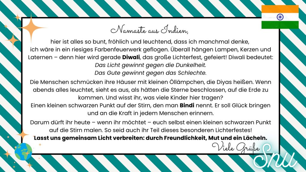 Frau Meyerdierks erklärt die Bedeutung und verteilt Bindis.