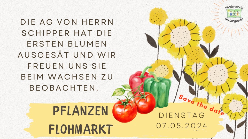 In der nächsten Woche findet schon wieder der alljährliche Pflanzenflohmarkt des Fördervereins statt. Am kommenden Dienstag verkaufen bei diesem Eltern vom Förderverein wieder verschiedene selbst gezüchtete Pflanzen und selbst gestaltete Gartenaccessoires an die Schülerinnen...