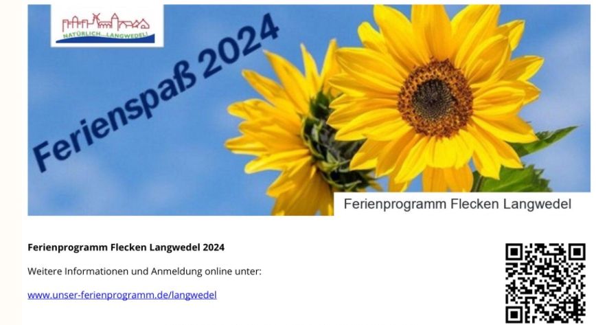 Auch diese Sommerferien hat der Flecken Langwedel in Zusammenarbeit mit vielen Vereinen und Organisatoren ein buntes und abwechslungsreiches Ferienspaßprogramm zusammengestellt. Schaut also gerne auf www.unser-ferienprogramm.de/langwedel vorbei und stöbert durch die verschiedenen Angebote. Sicher sind...